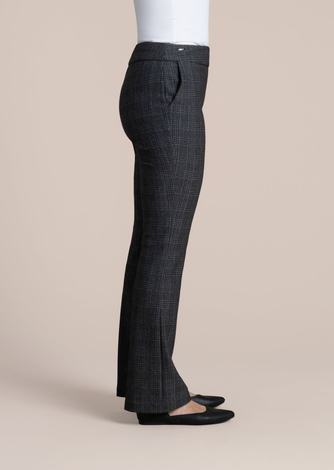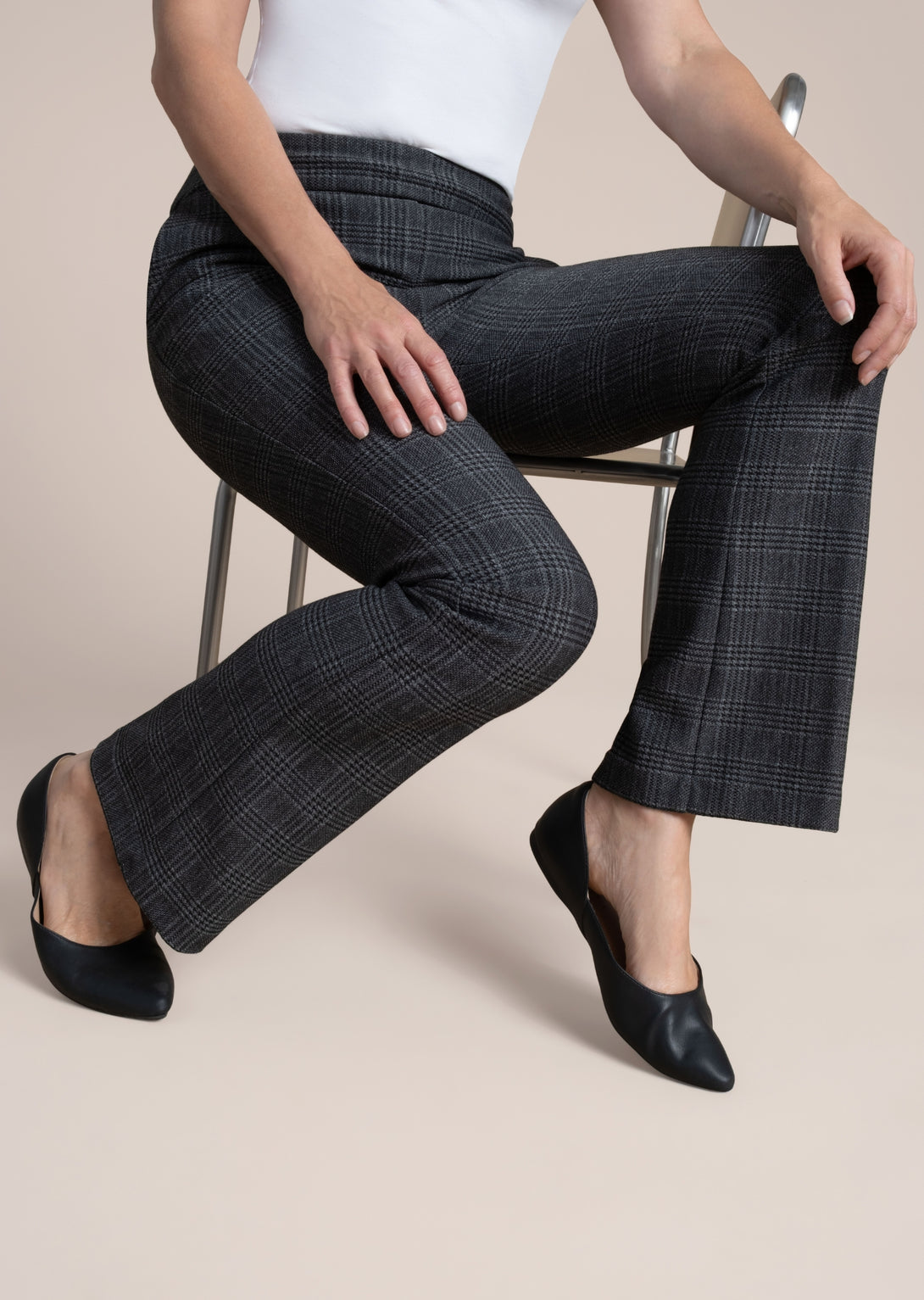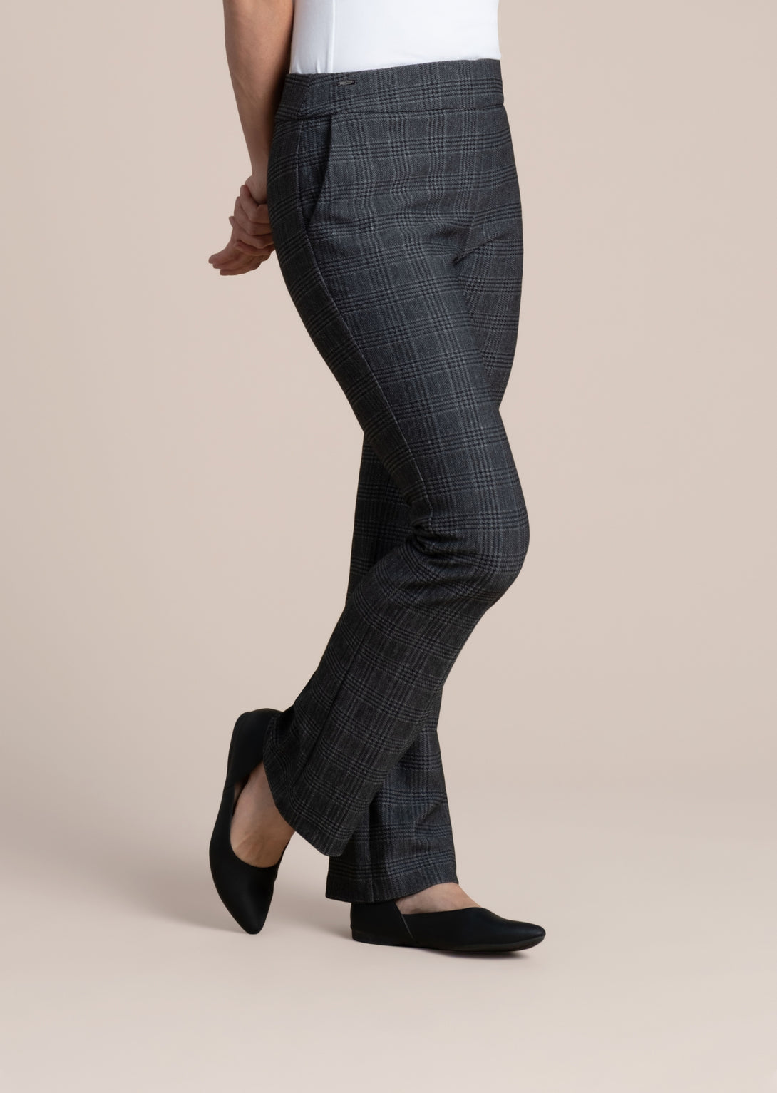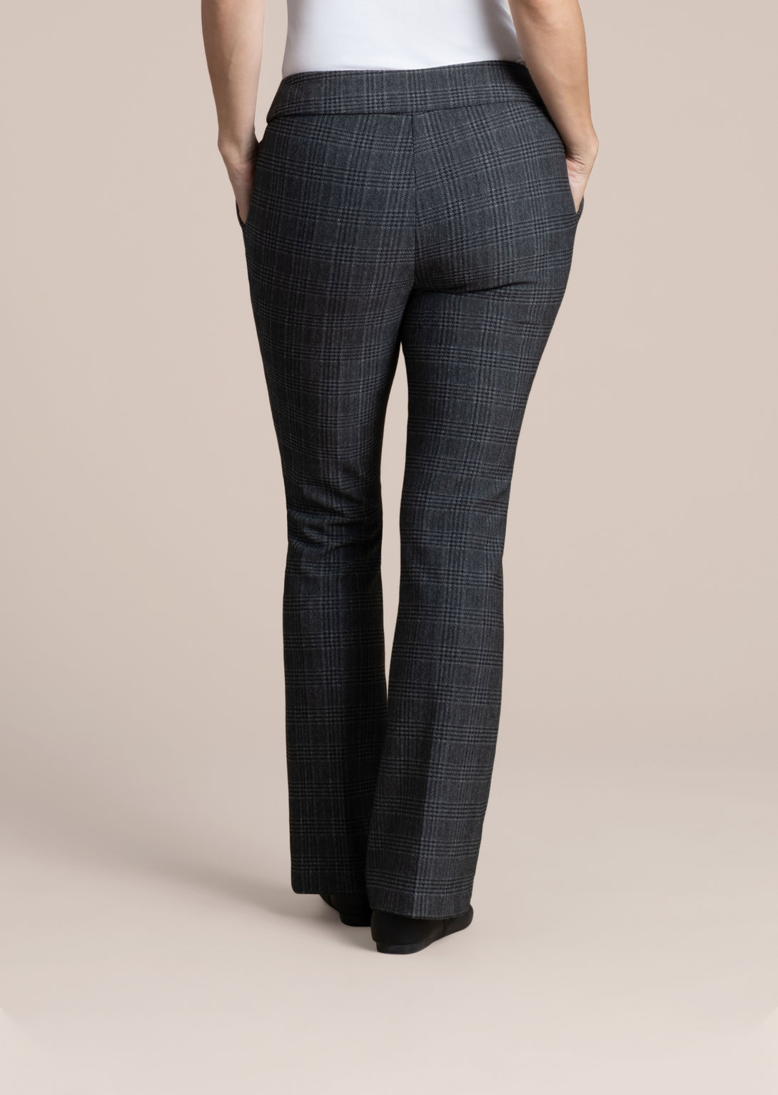 The Waverley Plaid 31" Mini Flair Pant showcases a classic plaid design combined with a contemporary mini flair silhouette. With a 31” inseam, 7” knee width, and 9” leg opening, these pants offer a tailored yet relaxed fit. The convenient pull-on style enhances comfort and ease of wear, making them a refined choice for both professional and casual settings.
