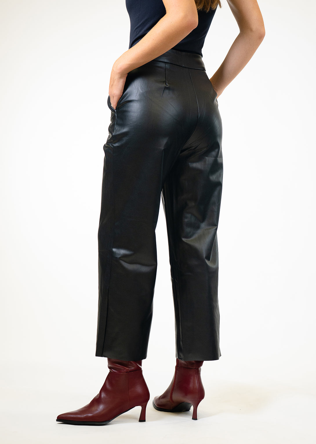 The Arden Pleather Wide-Crop Pant combines contemporary edge with everyday practicality, making it an essential addition to any modern wardrobe. Crafted to offer both style and comfort, its wide-crop silhouette provides a flattering fit while the pleather material ensures durability with a sleek finish. This versatile piece effortlessly transitions from casual daywear to evening ensembles, elevating your outfit with a refined yet bold aesthetic. Designed for those who appreciate both fashion-forward details and timeless appeal, the Arden Pleather Wide-Crop Pant stands out as a sophisticated wardrobe staple.