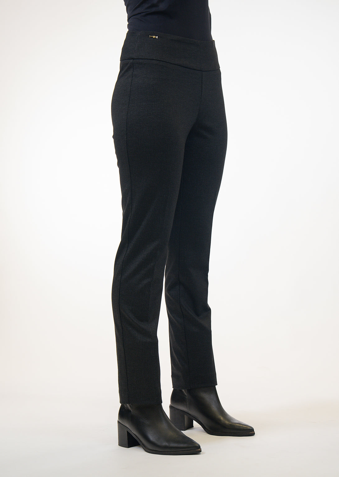These slim, ankle-length pants offer a refined fit with effortless pull-on comfort, making them an essential addition to any wardrobe. Featuring a subtle pattern, they blend versatility with understated style, perfect for both professional and casual settings. Their sleek silhouette enhances your look while providing ease of wear throughout the day.