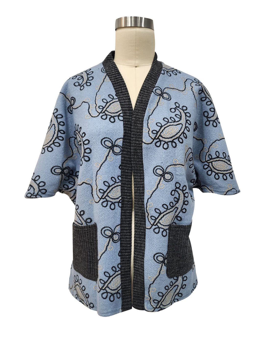 Elevate your layering game with this sophisticated open-front cardigan, featuring a refined paisley pattern that adds visual interest to any ensemble. The ribbed trim detailing along the edges provides a polished finish and gentle structure, while the relaxed silhouette ensures effortless comfort throughout your day. Perfect for transitional seasons, this versatile piece pairs seamlessly with basics or statement pieces alike, making it an essential addition to any well-curated wardrobe.