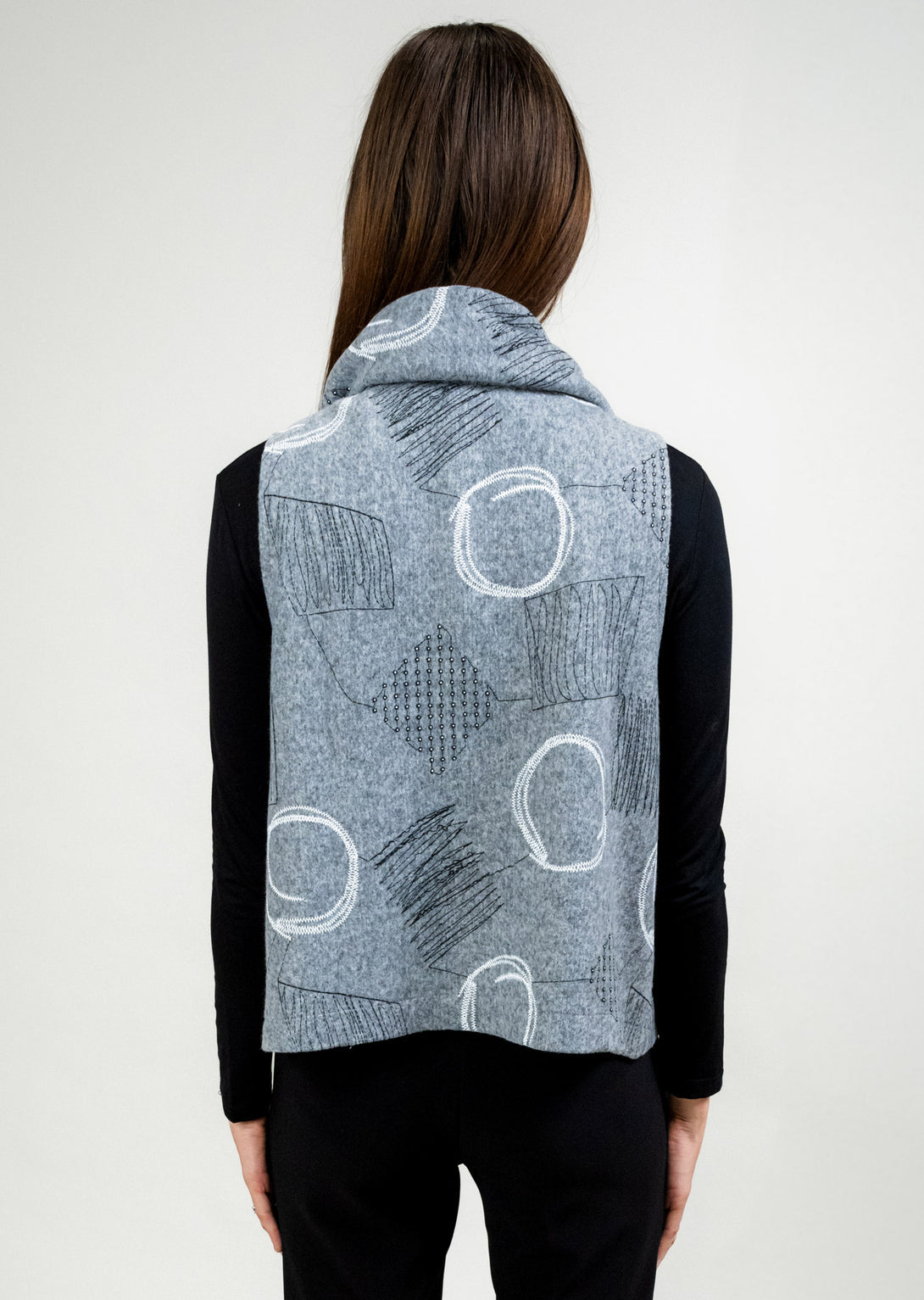 LIGHT GREY SHORT POUFF COLLAR VEST WITH DRAWSTRING