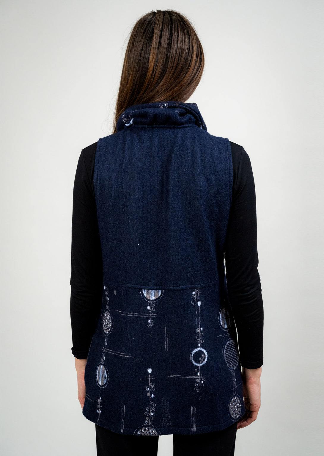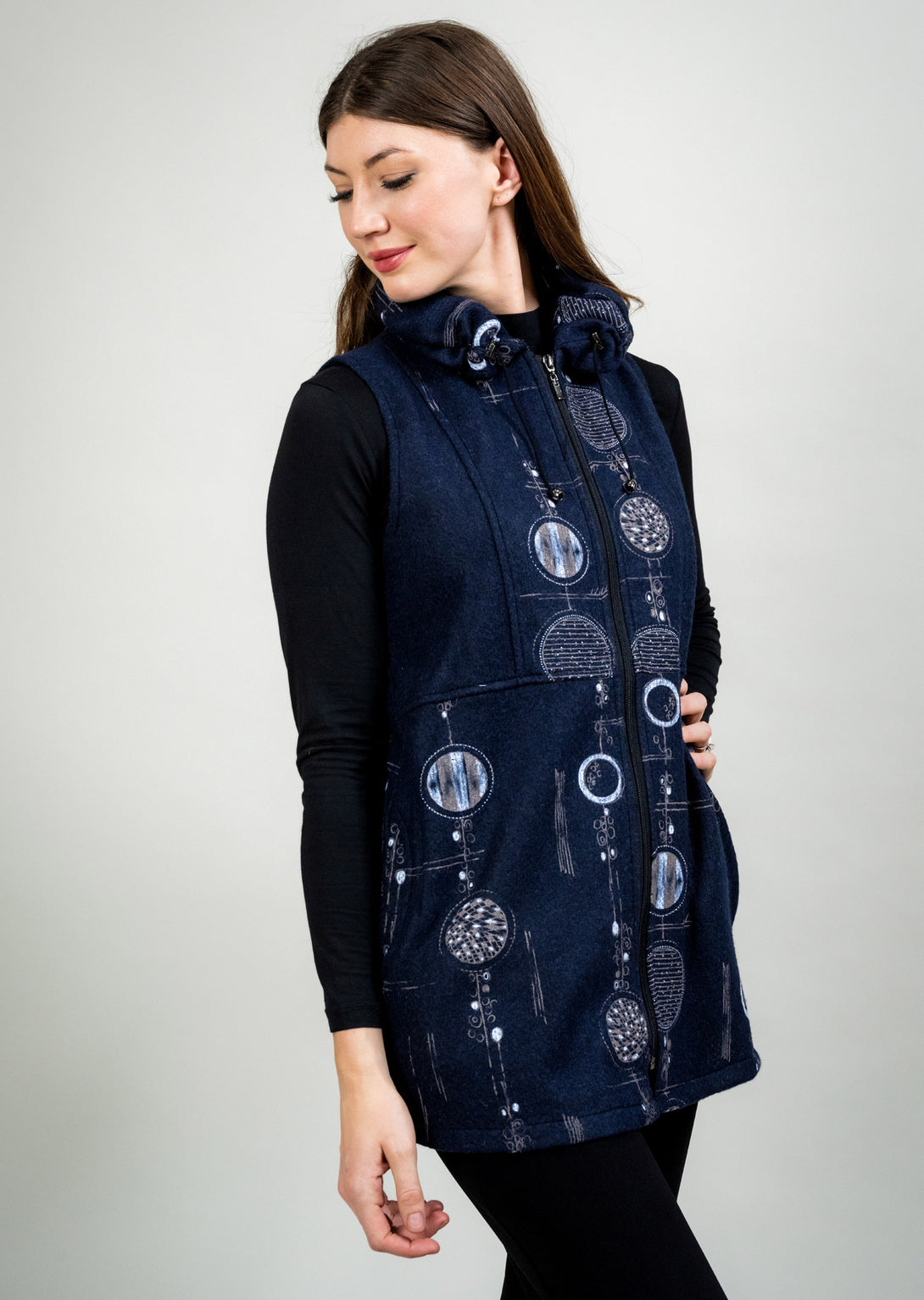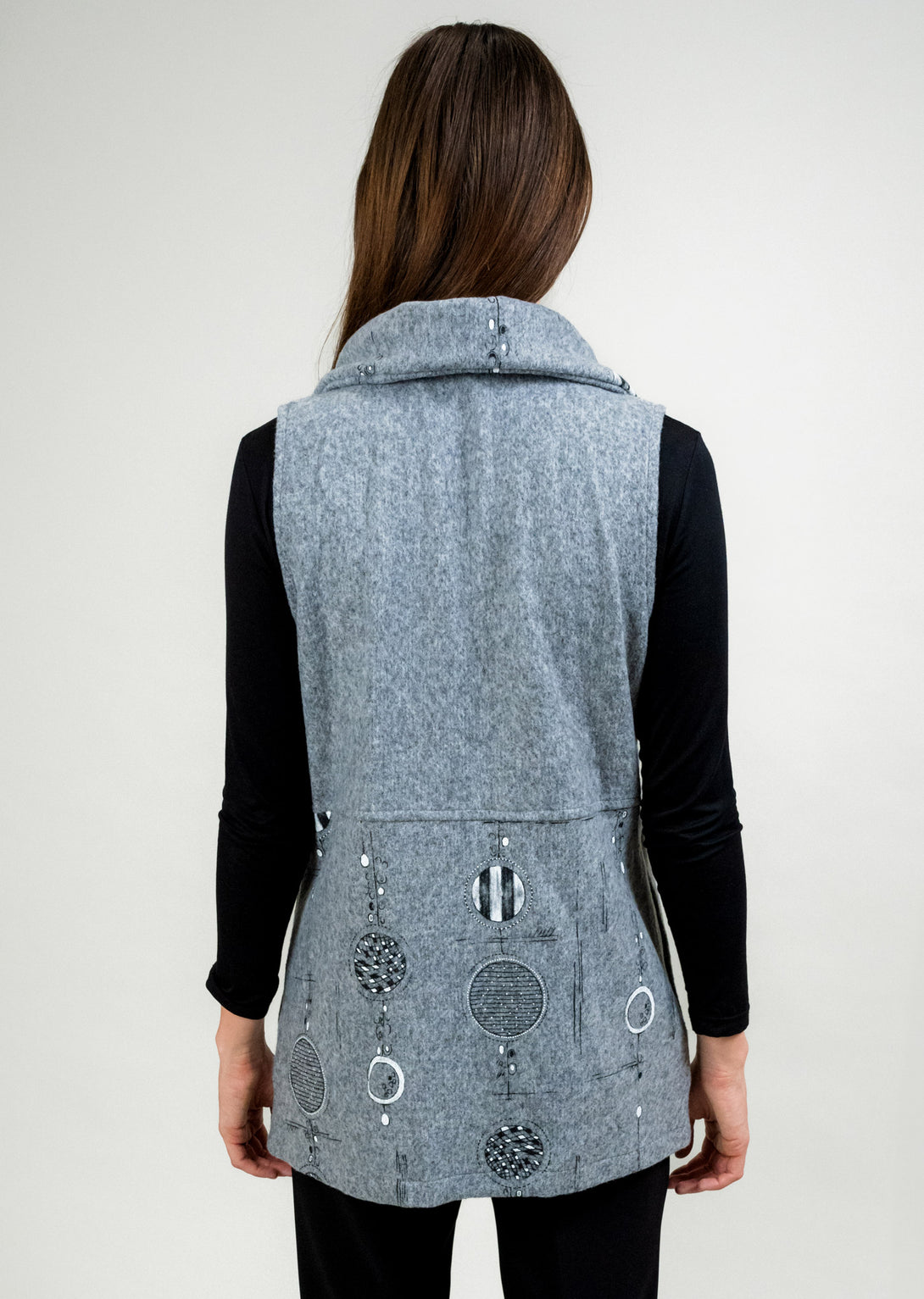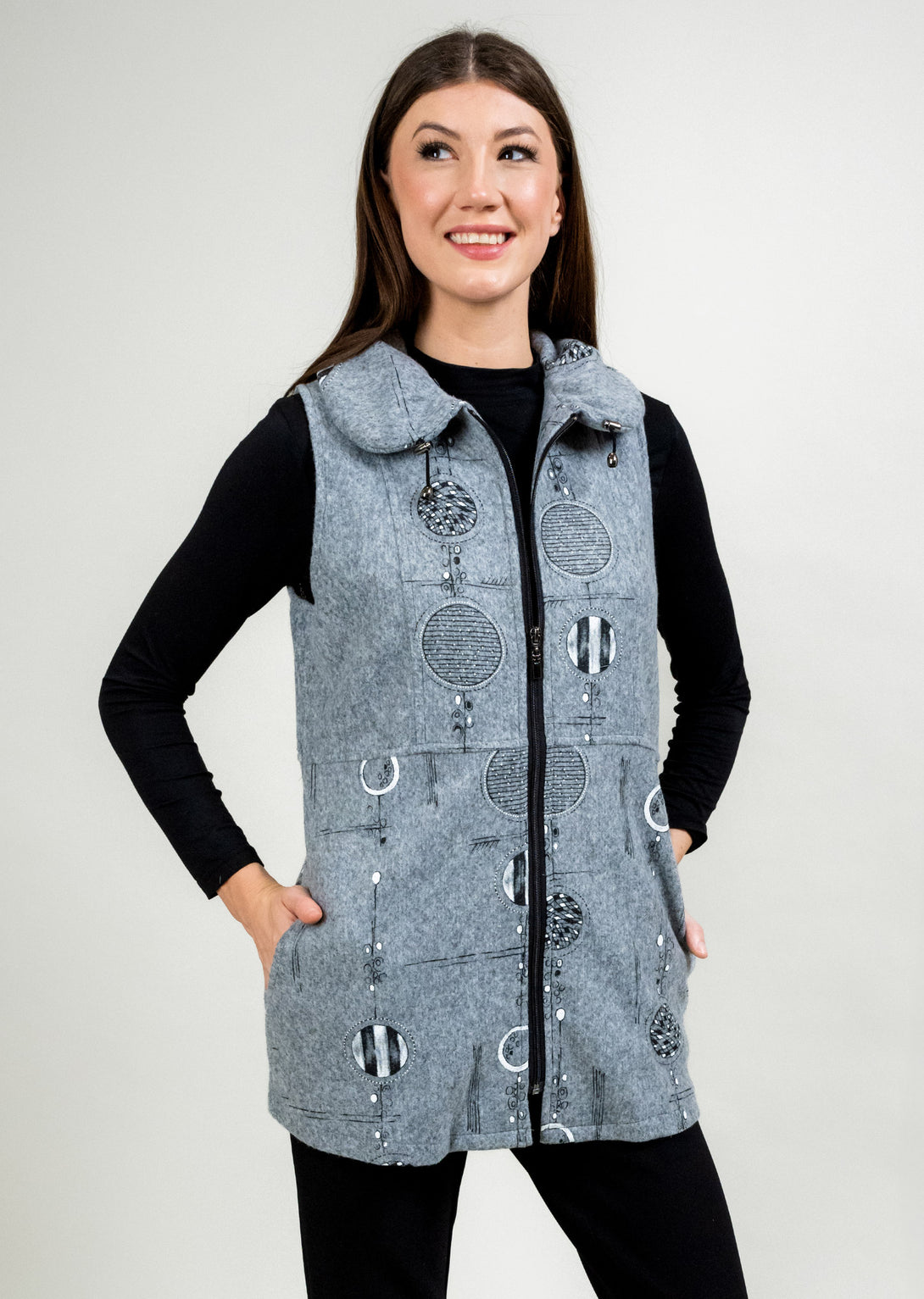ZIP UP VEST WITH DRAWSTRING COLLAR (LT GREY AND NAVY)
