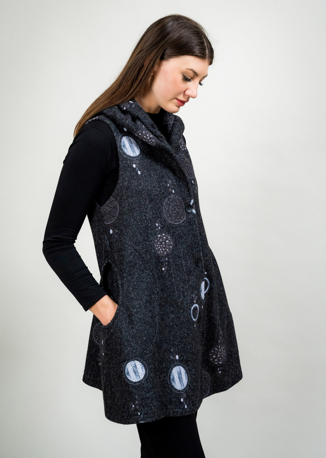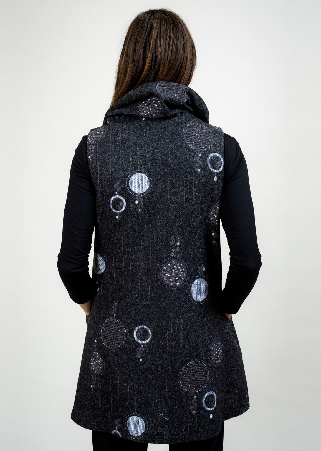 BUTTON FRONT VEST WITH 1/2 CIRCLE POCKETS