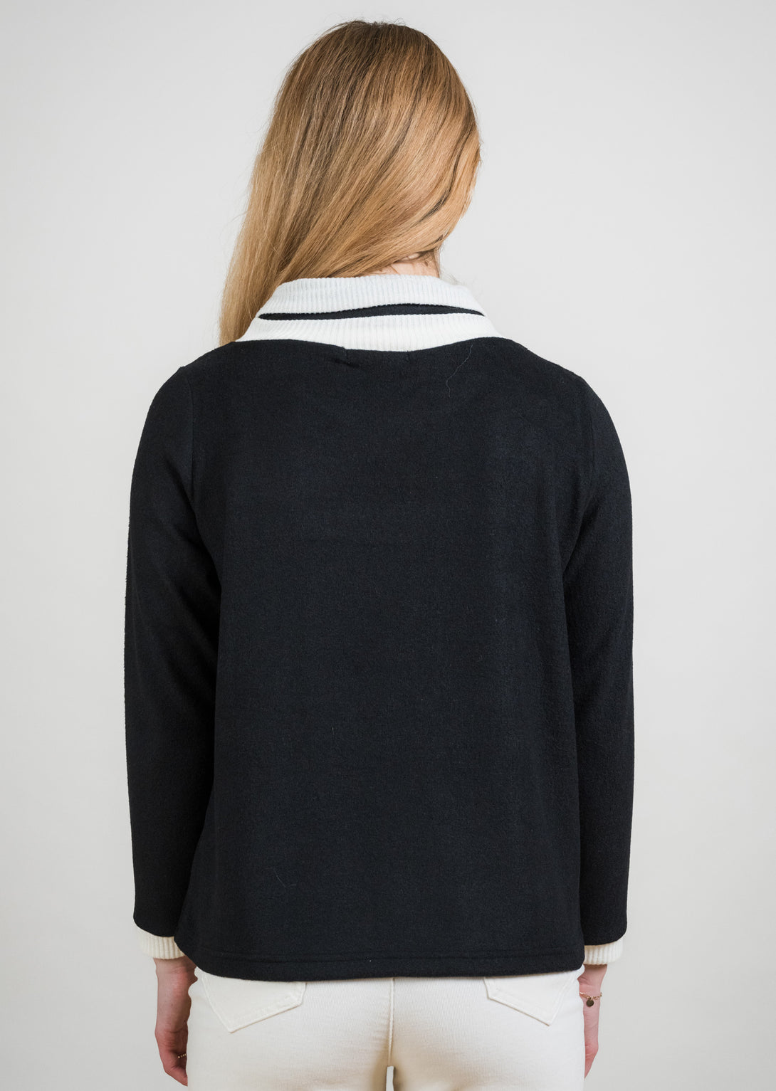WRAP COLLAR EMBROIDERED DETAIL SWEATER