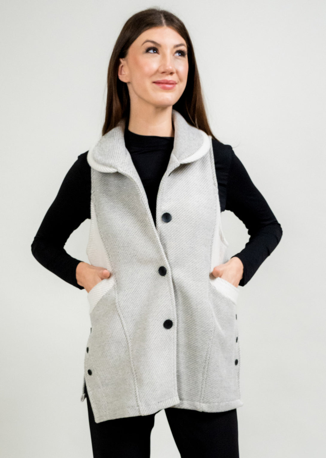 SHORTER SIDE BUTTON VEST WITH FRONT RIB TRIM