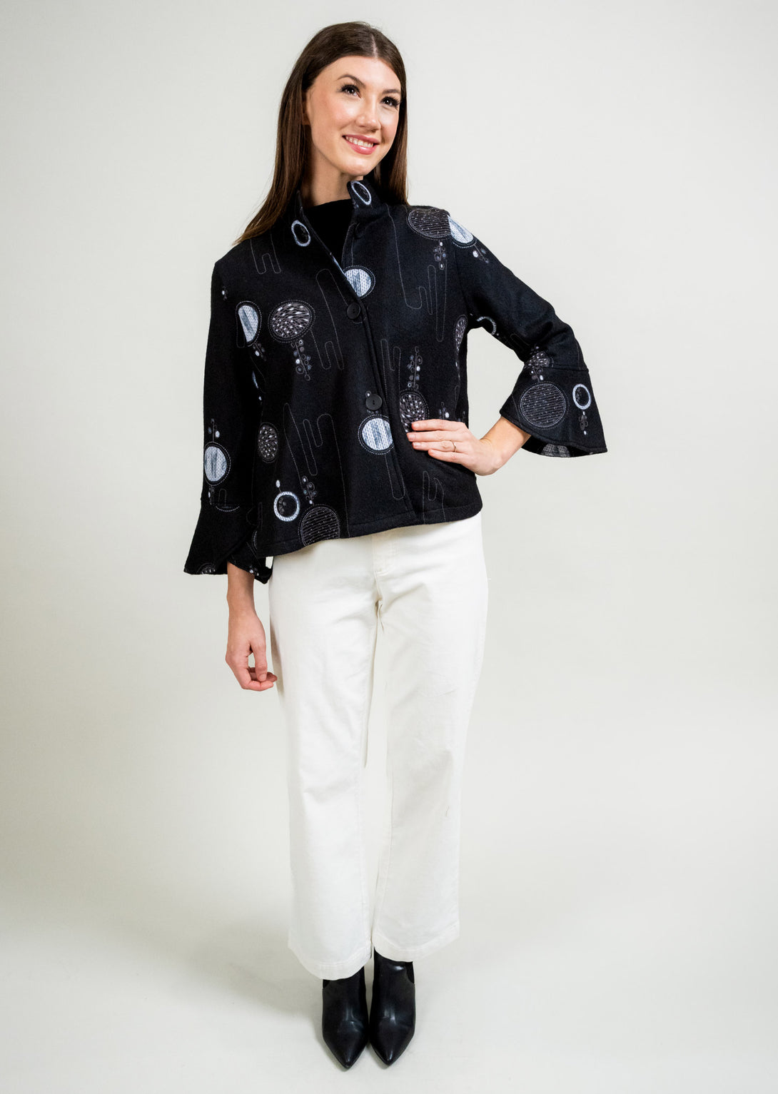 BELL SLEEVE MANDARIN COLLAR BUTTON FRONT JACKET