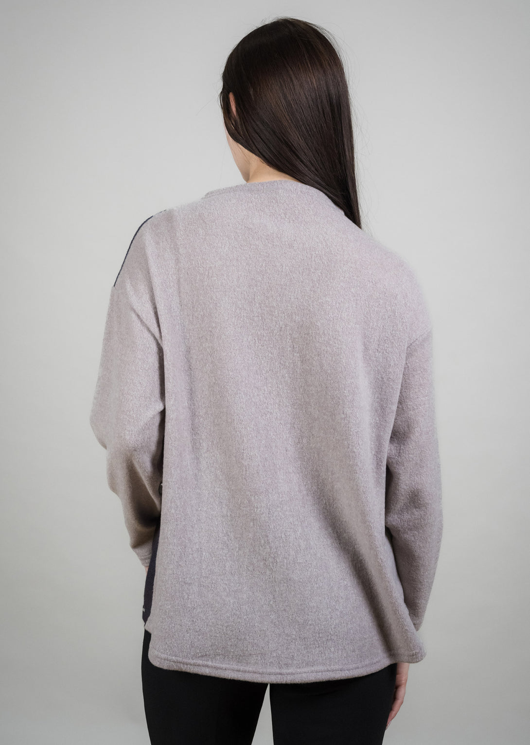 SPLIT FRONT CONTRAST BINDING FUNNEL NECK SWEATER