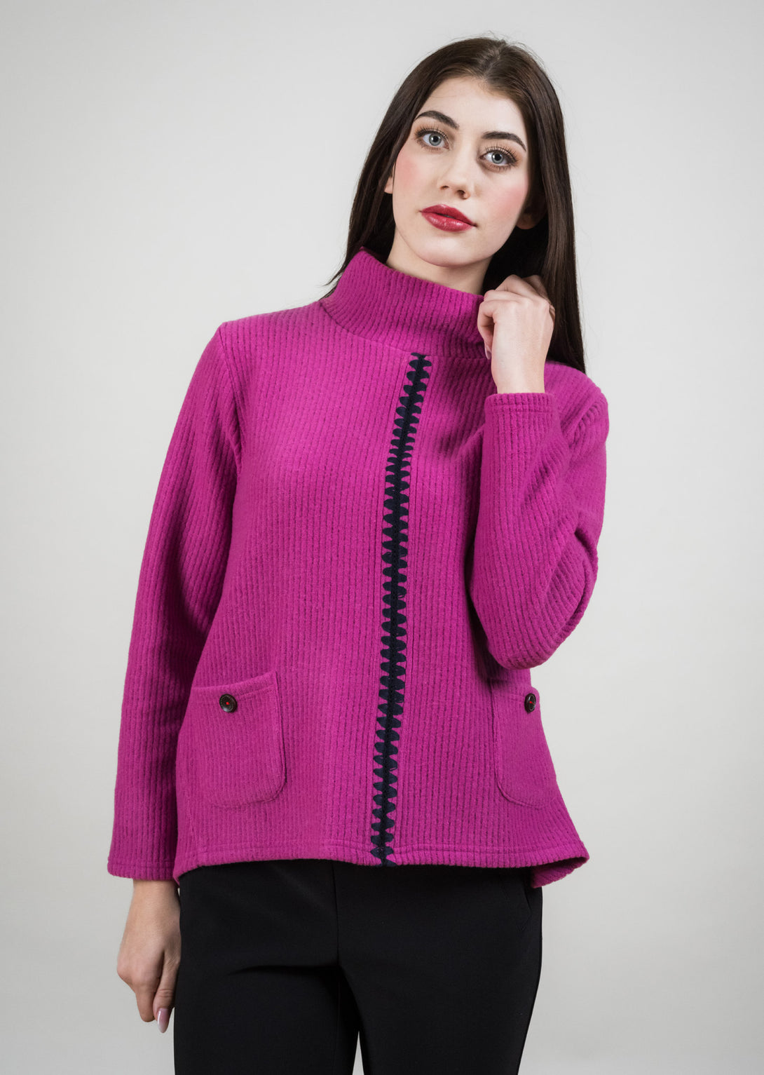 COWL NECK WITH POCKET AND RIC-RAC STITCH DETAIL
