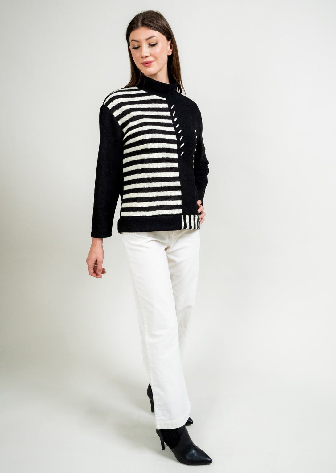 ASSYMETRIC STRIPE PANELED MOCKNECK SWEATER